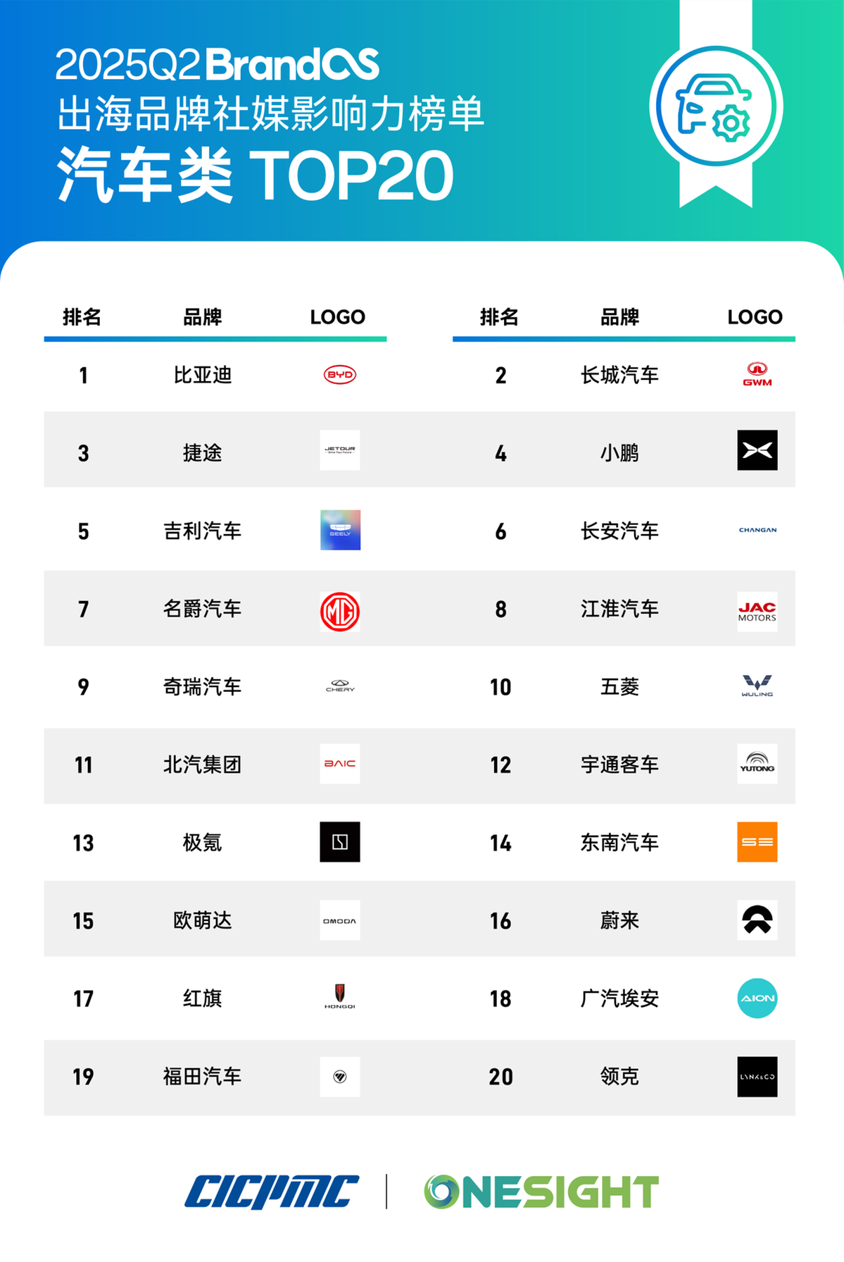 近日,中國國際跨國公司促進會(簡稱“跨國會”)發布消息稱,2025年第二季度《BrandOS出海品牌社媒影響力榜單》(以下簡稱“BrandOS榜單”)正式發布。該榜單由跨國會與OneSight聯合推出,旨在通過數據化手段評估中國品牌在海外社交媒體平臺上的傳播表現,為企業全球化發展提供參考依據。